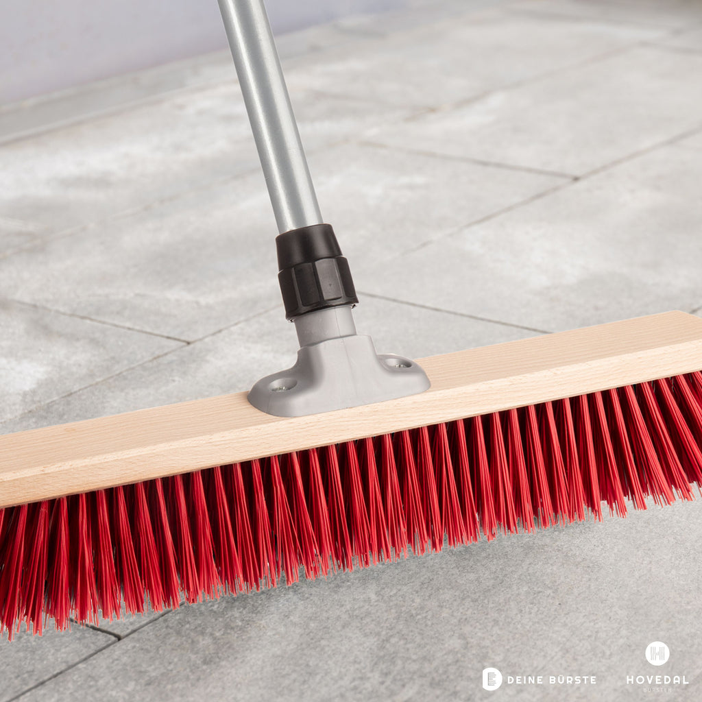 Stabiler Straßenbesen mit vormontiertem Kunststoffstielhalter für Teleskopstiele und Holzstiele geeignet. Länge/Arbeitsbreite - erhältlich in den Größen ca. 40 cm, 50 cm oder 60 cm, Breite ca. 9,5 cm, Höhe ca. 9,5 cm.